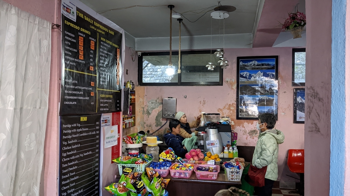 予定通り飛行機が飛べば、朝ごはんは飛行機を降りてから・・の予定でしたが、いつ飛ぶかわからないので、シェルパお兄さんたちがラーメンを作ってくれました。