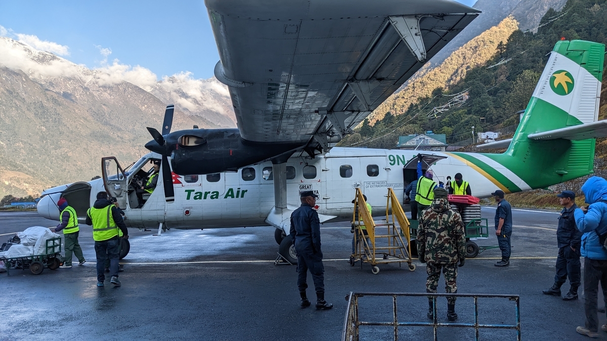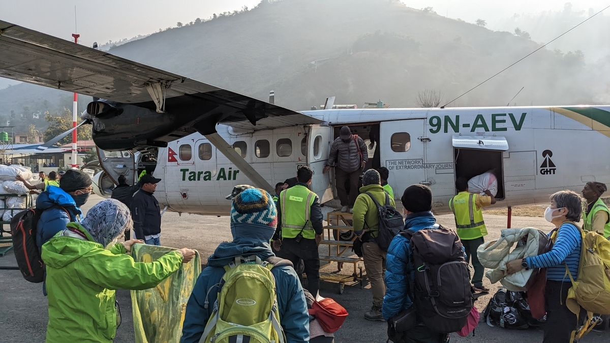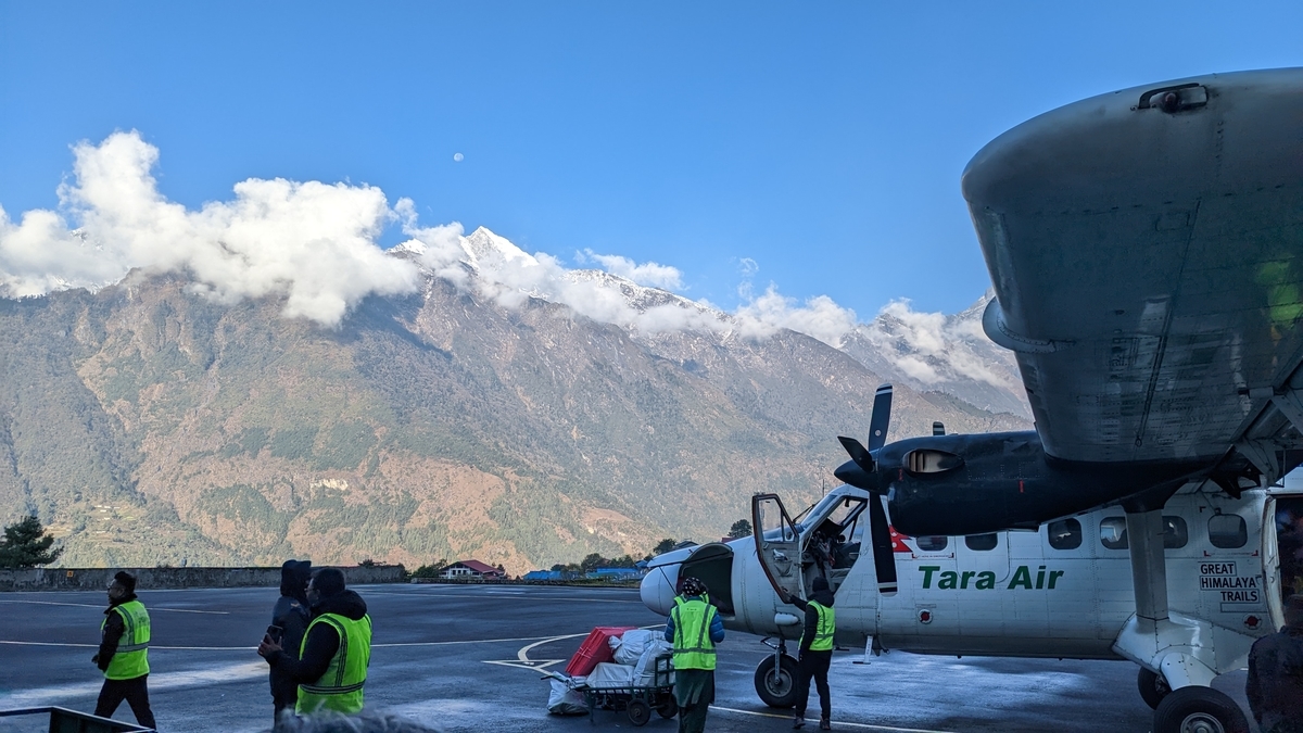 そして天気もみるみる回復してきました。飛行場からエンジンの音がしてきて一同ほっとする。早くカトマンズのホテルで頭が洗いたい(笑)。