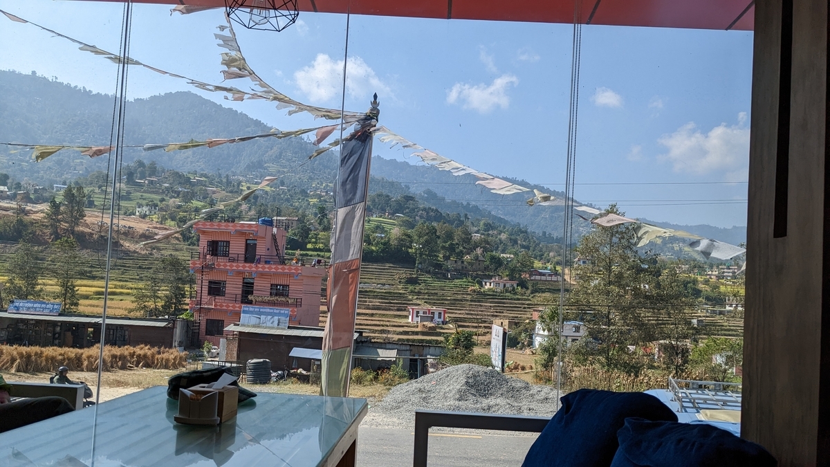 途中のおしゃれなレストランでダルバートのお昼ご飯、これがものすごくおいしかった。幸せであります。