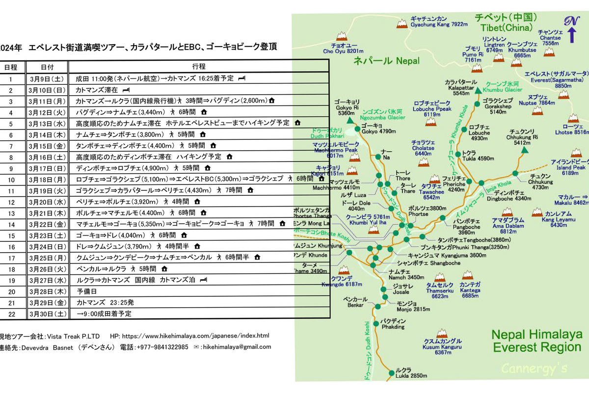 でもまぁ、自由に行程組めるのもすごく気が楽でした。ゴーキョは本当に行ってみたくて・・残念であった!!(表は自分で作りましたが、地図はネットからお借りいたしました!)