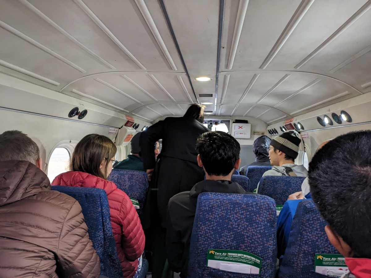 山側の席ゲットできず・・・ルクラ便は行くときは左側、帰りは右側がヒマラヤの山々がよく見えるのでおすすめです。でも座席が少ないのでなかなか難しいですよ。