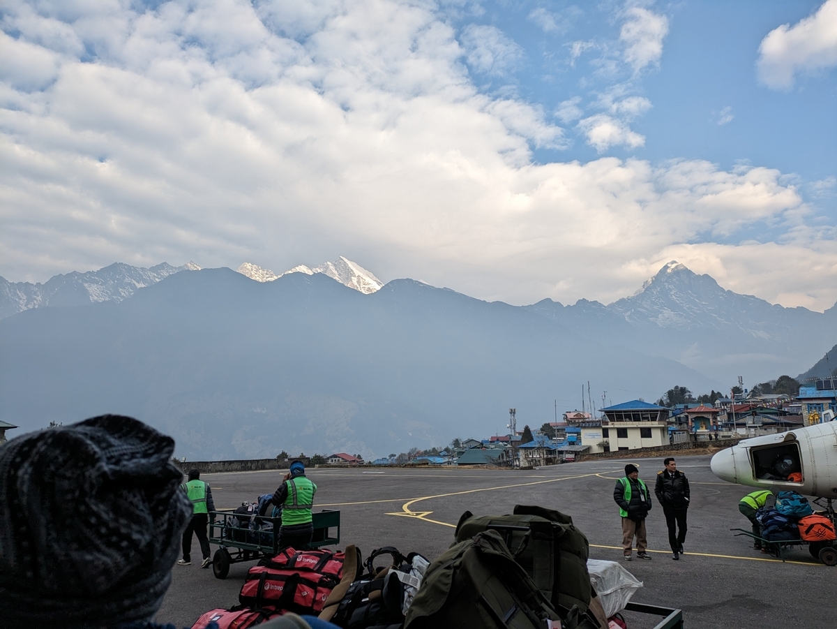 30分ぐらいのぶんぶんフライトで無事にルクラへ到着!!!テンションが上がる!!!