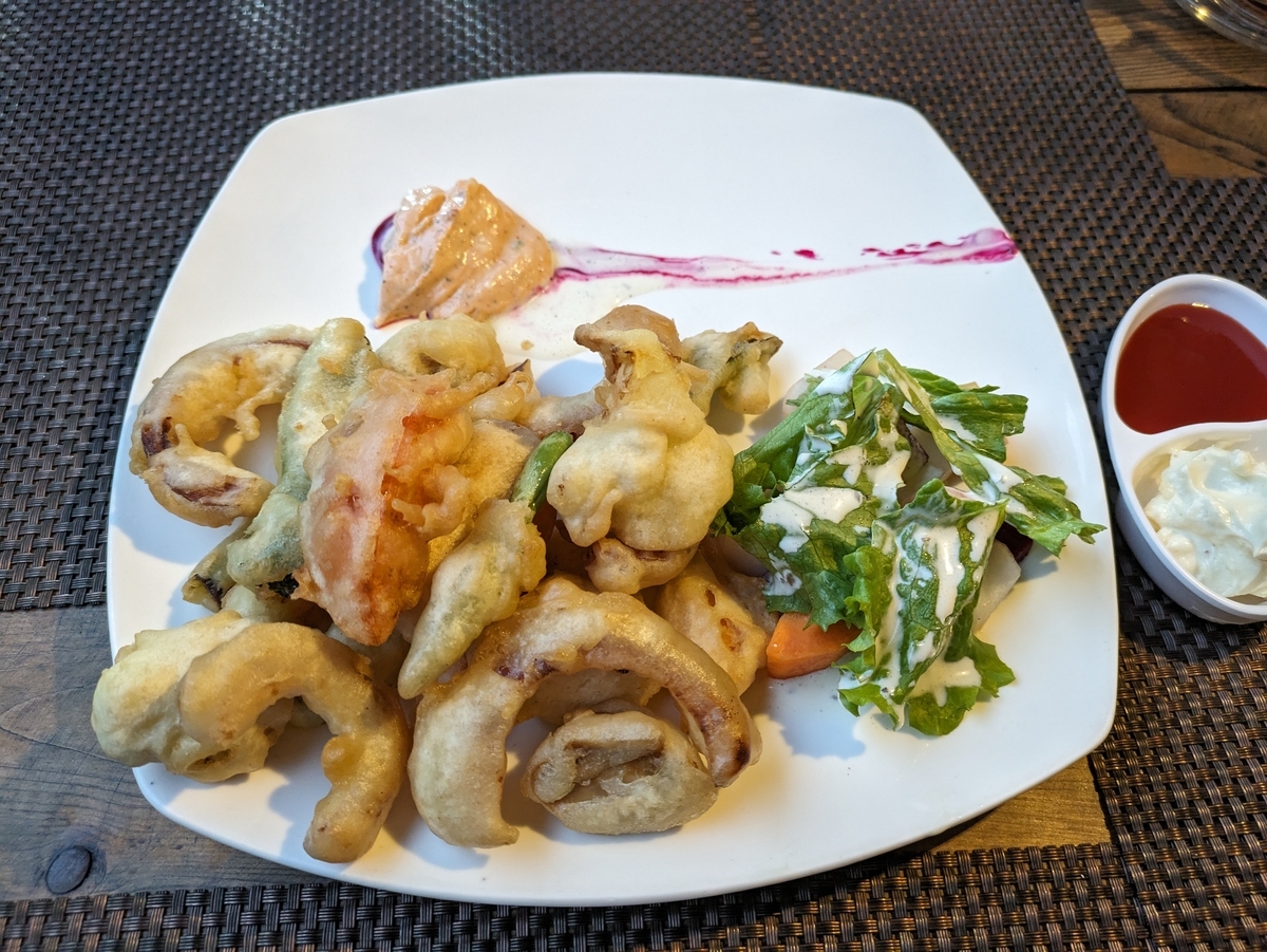 こっちはふわふわのサクサクでとってもおいしい。野菜のフリッターですね。